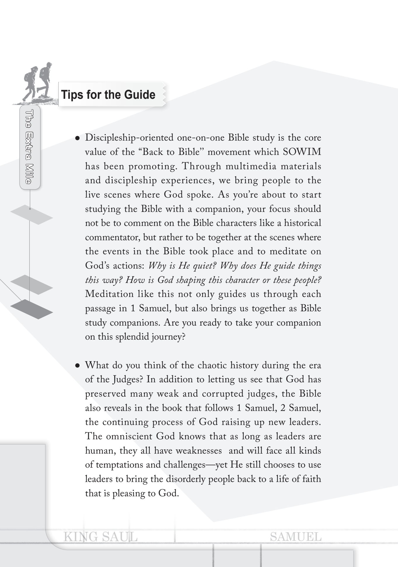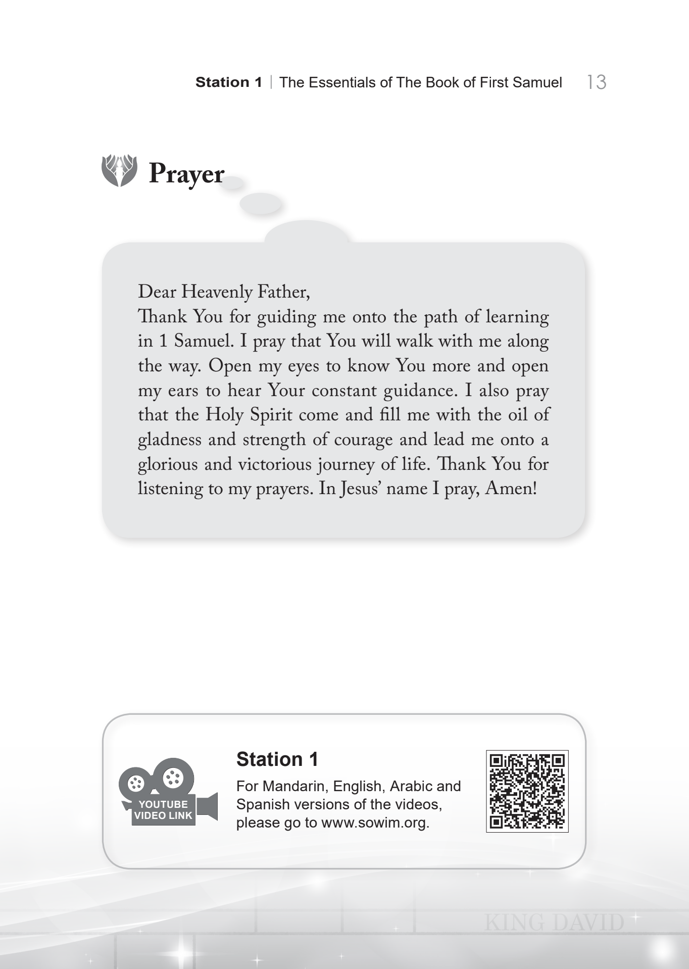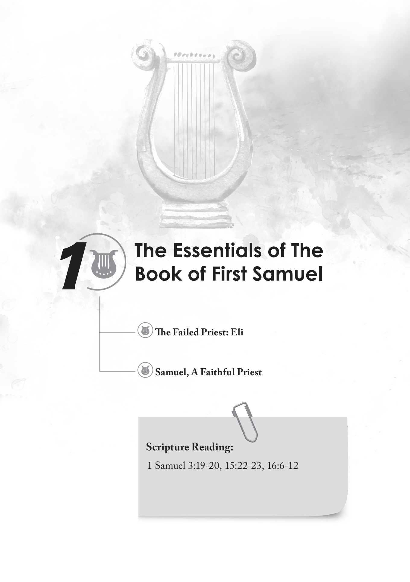 《撒母耳記上》這卷書,記述了以色列最後一位士師撒母耳,他身兼祭司和先知的職分,謙卑順服神,先後膏立了掃羅和大衛,幫助以色列民從偏行己路的士師時代,過渡到強盛的王國時代。