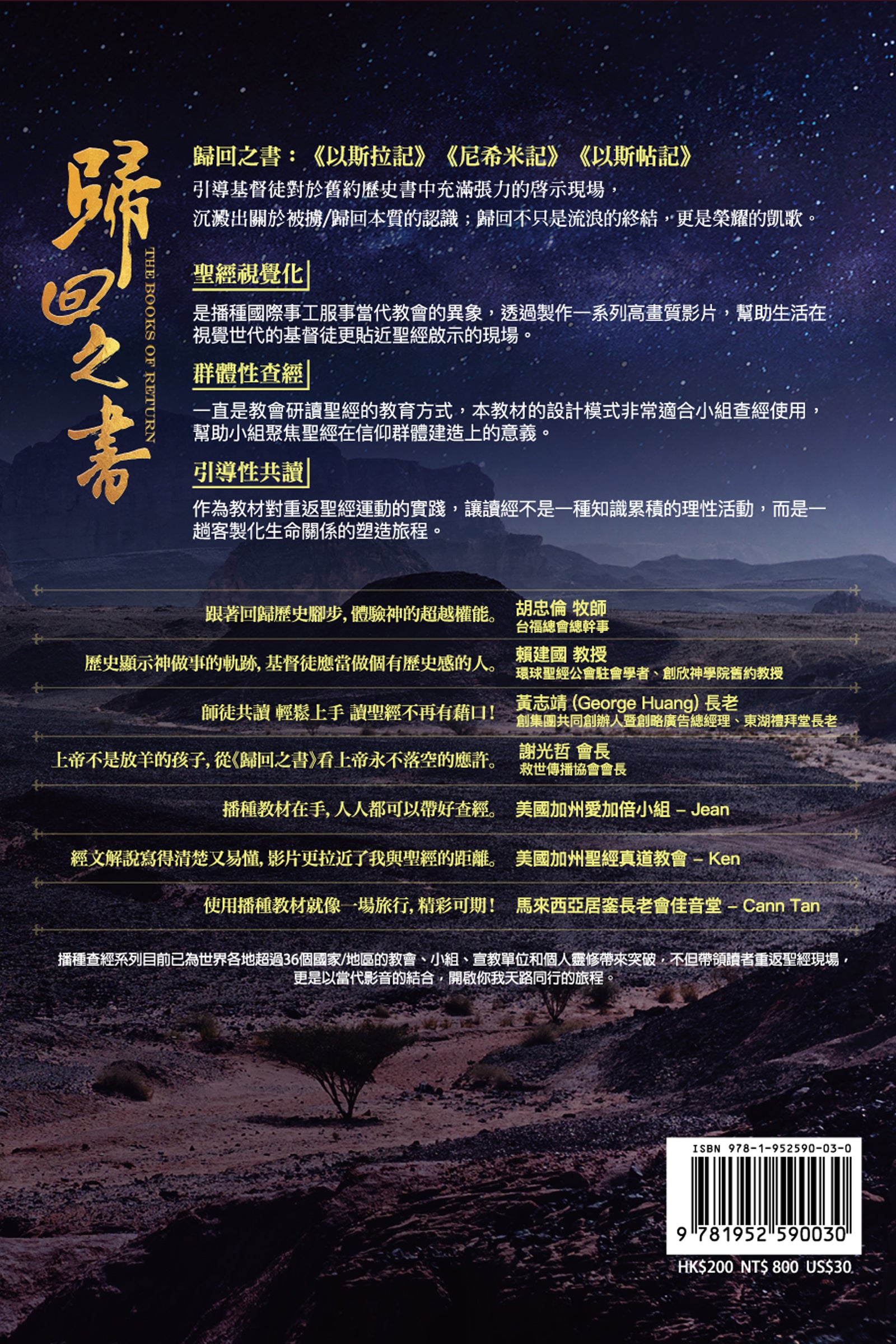 《舊約新視聽-歸回之書》是將播種國際事工所發行的《以斯拉記》、《尼希米記》和《以斯帖記》的查經教材經過重新的編排,集結成冊,共有十二站,成為小組查經或是主日學一整季的查經內容。每一站的影片都有前情摘要、經文講解和觀影分享,長度是25分鐘。各單元的研習手冊都有完整的經文解説和討論問題。每次在看完影片之後,透過手冊中的討論問題,使每一站的學習都能「身臨其境」。我們希望這些豐富的內容,經過整齊的編排,可以幫助小組查經和主日學上課的時間都能夠充份掌握,使每一站的經文學習都有最佳的果效。