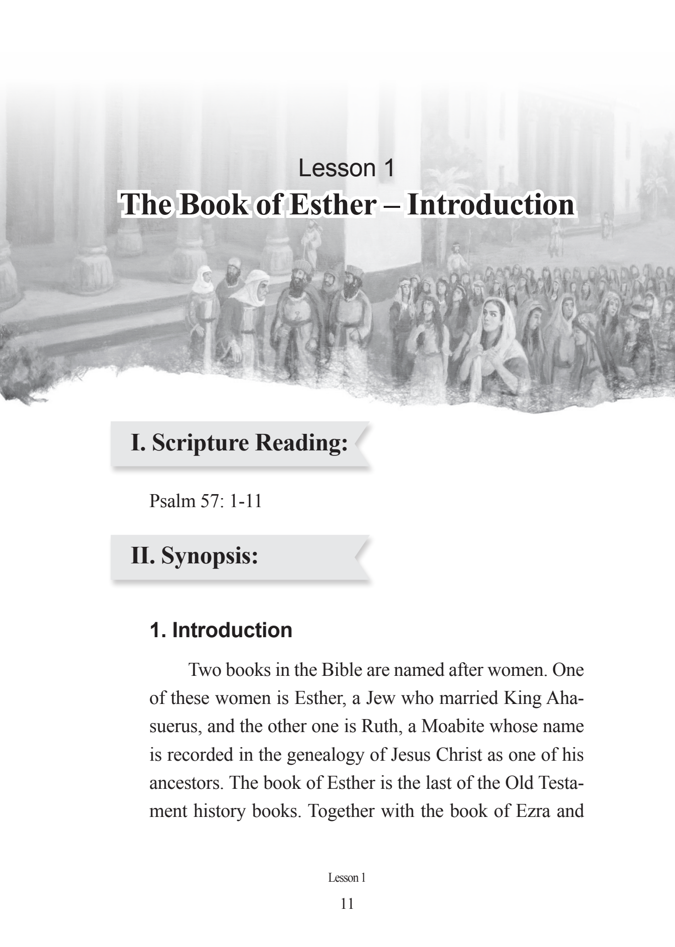 《以斯帖記》這卷書,不僅僅是歷史書,記錄了猶太民族存亡的重要歷史,還像是一齣充滿懸念的戲劇,神就是這部戲絕妙的編劇和導演。神藉著以斯帖,奇蹟般地挽救了猶太民族。後來,神又藉著從猶太民族而出的主耶穌,完成了救贖全人類的計劃。