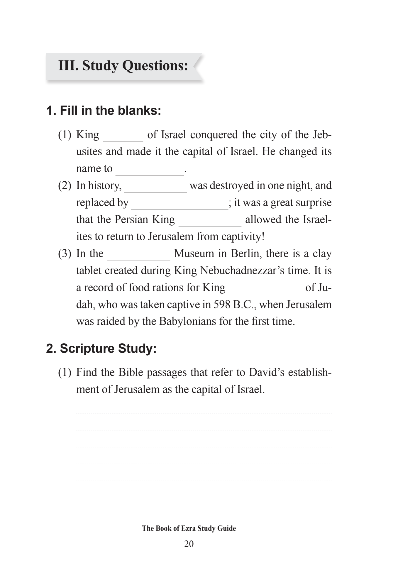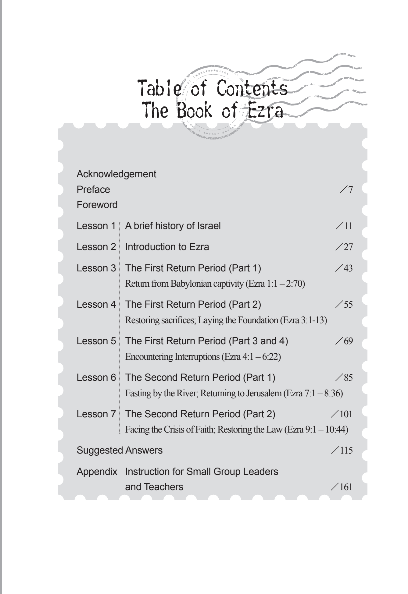 《以斯拉記》這卷書,記述了被擄的以色列民,在神奇妙大能的帶領下,於公元前 537 年和公元前 458 年,由波斯君王下旨,兩度回歸耶路撒冷。不僅重建聖殿,更重要的是在以斯拉的帶領下,真實地悔改,重建了與神的關係,回歸的以色列民經歷了靈裏的大復興。