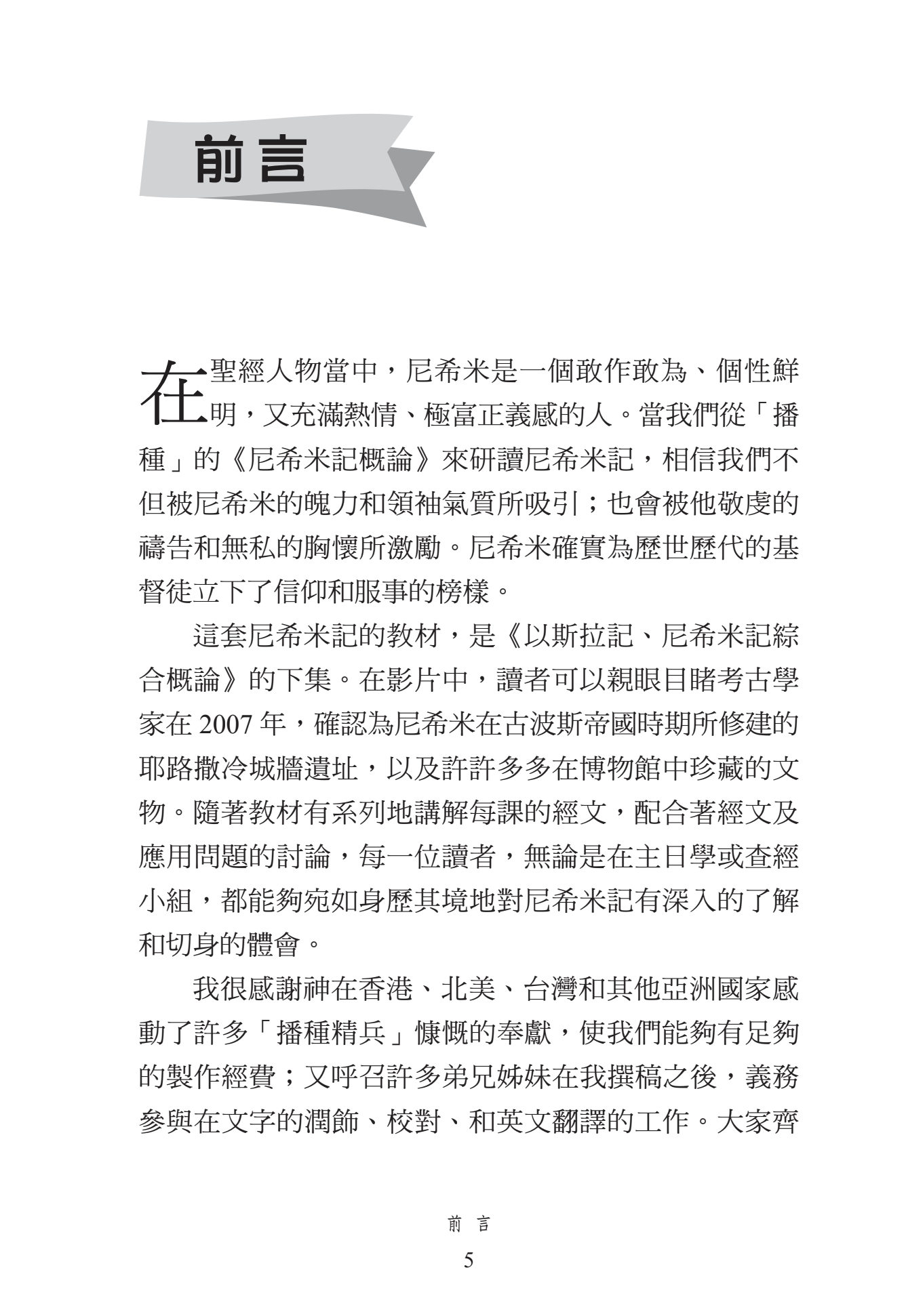 《尼希米記》這卷書,記述了被擄的以色列民,在神奇妙的保守下,於公元前445年,在尼希米領導下,第三批歸回耶路撒冷,僅用了52天修復了耶路撒冷的城牆!但尼希米心中有一個更大的藍圖,他要重建以色列人和神的關係,恢復以色列人純正的信仰生活。